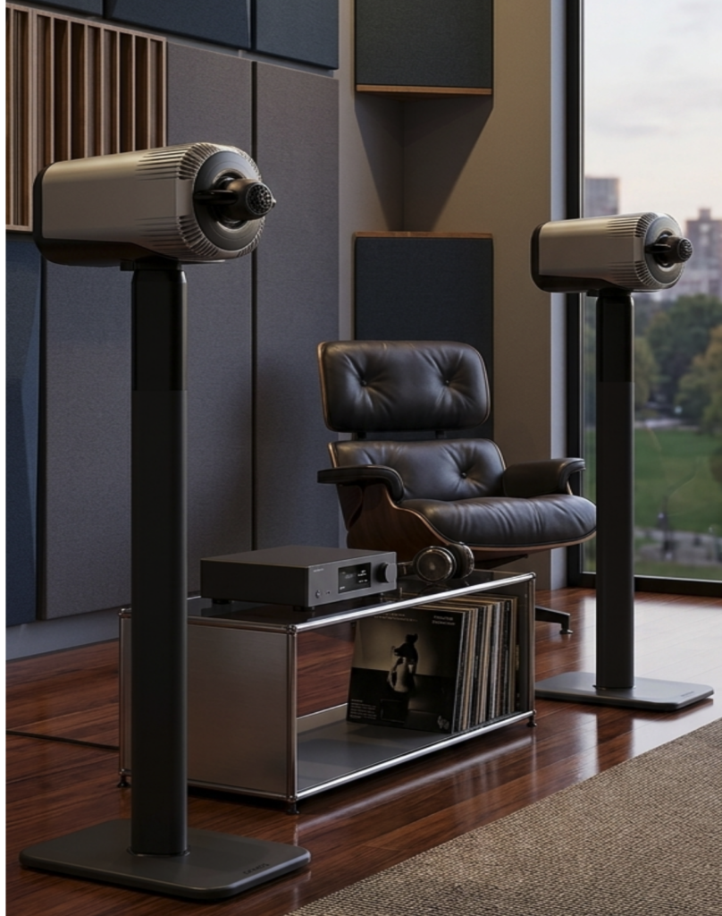 Flow/1 exists to challenge those tradeoffs through careful geometry, controlled loading, time alignment, and DSP, not brute size. The goal is simple: deeper bass from a smaller footprint, sharper image focus, and a more coherent presentation from a speaker that still suits a real room.